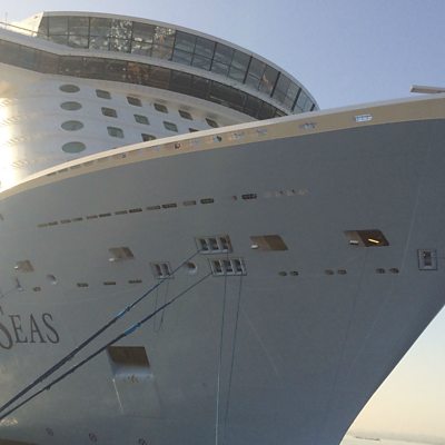 People were shaken from their beds in Southampton on Wednesday morning as Royal Caribbean's latest cruise ship 'Anthem of the Seas' arrived in the city under deep blue skies. Carrying 4,900 passengers, the German built ship is the 2nd of the new 'Quantum Class' and cost around $1 billion to build. BBC Radio Solent's reporter Neil Sackley was dockside as she pulled up alongside at City Cruise terminal. He spoke to her Godmother Emma Wilby, Royal Caribbean's senior vice-president for International Operations Dominic Paul but first to Stuart Leven, the company's UK managing director.