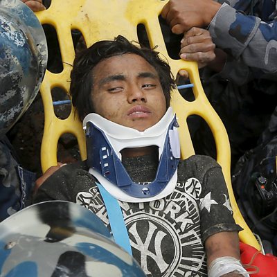 5 live's Nick Garnett reports as a teenage boy is pulled from the rubble in Kathmandu five days after an earthquake. The boy was trapped in a tiny hole underneath a five story building. The building collapsed after the 7.8 magnitude quake struck an area between the capital, Kathmandu, and the city of Pokhara. This clip is originally from 5 live Breakfast on Thursday 30 April 2015.