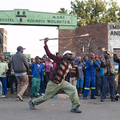 The violent riots on the streets of South Africa in recent weeks have seen foreigners killed, their shops looted and 5,000 left homeless. They are accused of taking jobs from locals in a country where high unemployment is a big concern - and an example of the gaping chasm that remains between rich and poor. So 21 years after Nelson Mandela pledged to liberate all South Africans from the continuing bondage of poverty and deprivation, why is South Africa one of the most unequal societies on the planet? (Photo: South African man waves a stick in the air, while demonstrators are chanting. Credit: Stefan Heunis/Getty Images)