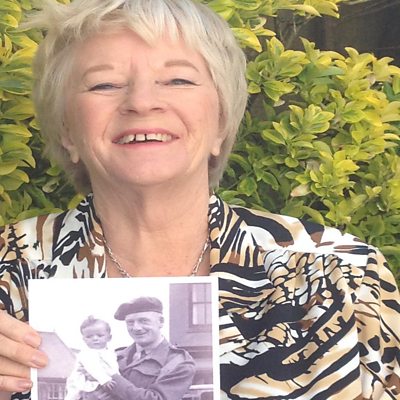 Angela lived in Jersey during the occupation, which began soon after the Germans defeated France in 1940. She was a baby. She was five when she was taken with her little brother to Liberation Square on 9 May 1945. She and her family followed the crowds of people flocking to the sea front to watch the Union Flag being raised from the balcony of the Pomme d'Or Hotel. Her mother was so taken up with the emotions of the moment that she thrust her baby son into the arms of one of the first British soldiers ashore, so that someone could take a picture of that incredible moment. Image: Angela holding a picture of her baby brother being held by a soldier on Liberation Day