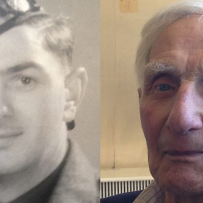 The week before VE Day Ken West from Leicester was in Holland fighting German troops when a number of them surrendered. There were rumours of a ceasefire , and Ken was sent home on leave. Before he left Holland, he was told that even though the war might end, he would still have to return at the end of his leave. Ken was pleased to get home, but dismayed when he found he would have to leave again on 8 May and miss all the celebrations. He reluctantly travelled back to Holland, but on the way, he and other troops managed to celebrate for a few hours in Armentiers with wine, women and song . Ken is now ninety , and will travel back to Holland with other war veterans in 80 London taxis at the beginning of May. Image: Ken then, and now