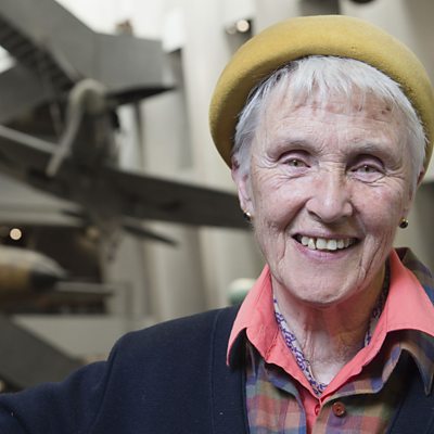 Moya McCarthy grew up in Fulham and remembers the Blitz and the buzz bombs, although for some of the war she was evacuated to Wiltshire and Leicestershire. Her father was an Air Raid Warden. Moya remembers an early indication of bombs coming was a dip in the wireless signal, as they listened to the BBC; she also remembers that although the Thames under Hammersmith Bridge always looked beautiful under the full moon, again this was an indication that the raids would come. Here she is in conversation at the Imperial War Museum in London. Her photo comes from the IWM Collection.