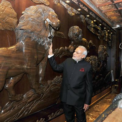 Carrie Gracie asks how far China’s regional and global policy presents an opportunity for economic co-operation or a threat to its neighbours and global partners? Is China - as its leader, Xi Jinping, insists - a 'civilised lion' or will it prove to be a dangerous predator? As the Indian Prime Minister Narendra Modi visits Beijing, we hear the views from inside China and discuss challenges, internal and external, to the country’s global ambition. (Photo: Indian Prime Minister Narendra Modi and Chinese President Xi Jinping at the Big Wild Goose Pagoda in Xi'an. Credit: AFP/PIB)