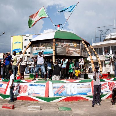 This week reports broke of an attempted coup in Burundi as an army general sought to seize power from President Nkurunziza while he was out of the country. From one moment to the next, the news of who was in charge was constantly changing. The Fifth Floor stepped inside the BBC Africa newsroom to get a frame by frame view of how the news unfolded, through the journalists at the heart of the story and the sounds around them in the newsroom and on the airwaves. Kawoon's Kabuli Cat Afghans are becoming pet owners, with pet food and toys and veterinary care all available in the capital Kabul. BBC Persian's Kawoon Khamoosh tells the Fifth Floor about his visit to the country's only rescue centre for cats and dogs. After negotiating with his family, he is now offering a home to Pluto the cat. What happens when the lights go out in Ghana? A large demonstration is expected in Ghana on Saturday in protest at the ongoing energy crisis. Sammy Darko is BBC Africa's reporter in Accra and while he's been sitting in the dark he's been keeping track of some of the more surprising results of living without electricity. An Ethiopian Armenian at Eurovision The Eurovision Song Contest marks its 60th anniversary this year. There's one entry that BBC Africa's Hewete Haileselassie from Ethiopia is going to be following closely and that is the song from Armenia. Why? Because Vahe Tilbian, a member of the Armenian group Genealogy, is an Ethiopian Armenian and also her friend. Hewete linked up with Vahe to talk about the ties between Armenia and Ethiopia, and his journey to Eurovision. The Prophet Translated into over 50 languages and selling tens of millions of copies, The Prophet, by Lebanese author Kahlil Gibran, has inspired the Beatles, John F. Kennedy and Indira Gandhi. Now it's been made into an animated family film which recently opened in Lebanon. David Amanor spoke to reporter Carine Torbey from Beirut and BBC Arabic editor Edgard Jallad. Ukraine's Changing Dictionary Natasha Matyukhina of BBC Monitoring takes a look at how new words have sprung up in the Ukrainian and Russian languages since the start of the conflict in 2013. And weird and wonderful stories from the world wide web with Fifi Haroon. Picture: Burundi protests. Credit: Getty Images