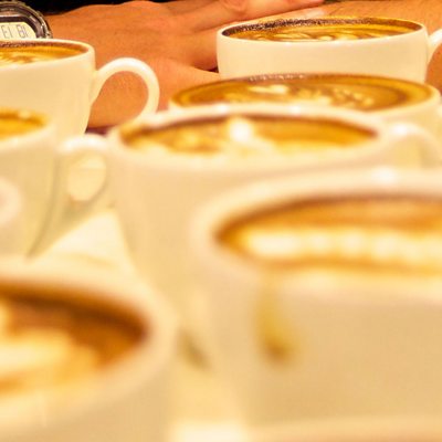 Professional barista Jeremy Challender walks Manuela through the steps.