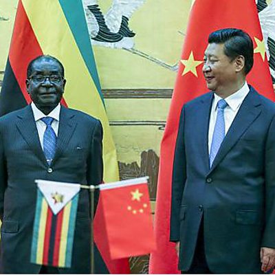 Journalist Adama Gaye say some African leaders - including President Mugabe of Zimbabwe and Sudan's Omar Al Bashir - survive because of China's support. The picture shows Zimbabwean President Robert Mugabe and his Chinese counterpart, Xi Jinping, in 2014. President Xi hailed Mr Mugabe as an African liberation leader and an "old friend" of the Chinese people. (Credit: AFP)