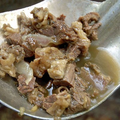 'Rycce of Flysh' - a medieval form of risotto - features alongside deer broth, whale, seal, heron and gravy dishes in one of the oldest cook books in modern English. Polly Russell, a food historian and curator at the British Library, pours over the medieval food manuscript - The Forme of Cury. The manuscript contains 196 recipes and was compiled towards the end of the fourteenth century. Image: Water-buffalo broth (Getty)