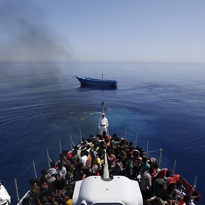 Many ordinary Italians have been touched by the thousands of migrants arriving on their country's shores. One such person is the optician on the Italian island of Lampedusa who rescued many migrants from the Mediterranean Sea. Emma Jame Kirby has been to visit him to hear his story. (Picture: A group of sub-Saharan Africans sit on board an Italian police vessel / Credit: Reuters)