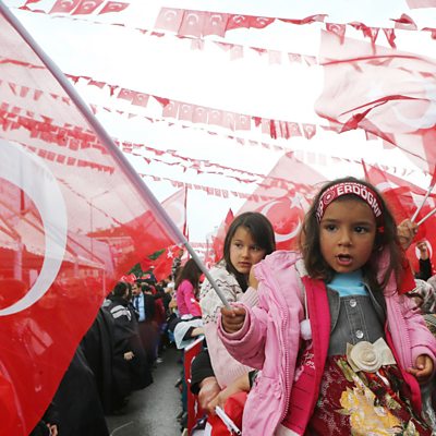 Following the surprise result of the general election in Turkey, where the once popular moderate Islamist president Recep Tayyep Erdogan has lost votes to the liberal opposition, Newshour Extra travels to Istanbul. We ask why moderate Muslims and the middle classes - who had benefited from Mr Erdogan’s policies - are turning away from him. We also explore the longer term political future for the weakened president and the consequences for the Middle East, where the Turkish model of political Islam has been seen as a welcome alternative to radical Islamism. (Photo: Supporters cheer President Erdogan as he addresses an election rally in Ankara ahead of the elections. AFP photo/Adem Altanadem Altan/Getty Images)