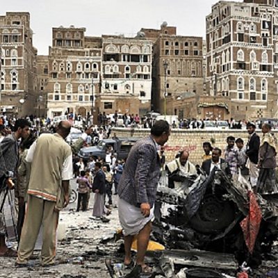Jeremy Bowen lays bare the "layers of war" in Yemen's multi-faceted, multi-front conflict. Carrie Gracie reflects on why some parents in China never buy toys for their beloved children. Laurence Grissell meets the bereaved families of Nepali workers who have died abroad, seeking answers and compensation at an agency in Kathmandu. And, Julia Langdon weighs up how the island of Corfu is weathering the Greek financial crisis. (Photo:Yemeni security officials inspect the site of a car bomb attack near of Qubbat al-Mahdi Mosque used by the Houthi fighters in Sanaa, Yemen, 2015. Credit: Hamoud/Anadolu Agency/Getty Images)