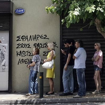 After European funds are turned off, Greek banks will close and capital controls will be put in place, as Greece holds a referendum on the European Central Bank's bailout terms. We hear the view from Athens and outside the capitol. A third rocket disaster in eight months as SpaceX's Falcon explodes moments after launch. The accident will add to mounting pressure on mission planners, but does it signal opportunity in the private sector? We speak to astronaut and author Commander Chris Hadfield. Plus, we visit Wales and the front line in renewable tidal energy. (Photo: People lining up to use an ATM. Credit: Getty Images)
