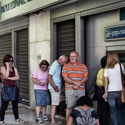 Lucy Burton brings us a special edition of World Business Report, live from Syntagma Square in Athens. Lucy and her producer Sarah Stolarz have been talking to Greek businesses and people across the country. We hear from businesses in Athens about fears that capital controls may mean pensioners struggle to pay for their medicines. We get a range of views on the crisis from across the political spectrum, with economic analysis from Aristides Hatzis, Professor of Economics and Law at the University of Athens. Plus Lucy reports on the impact of austerity in the countryside, from Argos, a town 100km southwest of Athens, where agriculture is the main source of income. Picture: Greek Pensioners wait outside a closed National Bank branch. Picture credit: Reuters