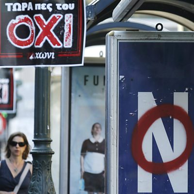 Newshour's Tim Franks in Athens speaking to 'Yes' and 'No' camps ahead of Sunday referendum; China's stock market woes; Sailing spiders (Photo credit: Reuters/ Christian Hartmann)