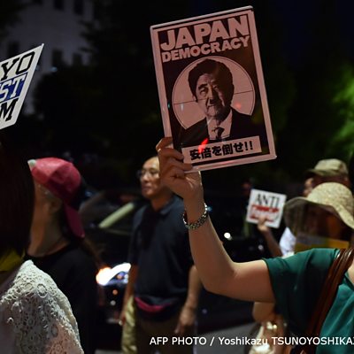 Japan military will fight overseas for the first time since WW2; tourists detained in China; mindfulness in schools, does it work? (PHOTO: Civic group members protesting in Tokyo against Prime Minister Shinzo Abe's controversial security bills. AFP PHOTO / Yoshikazu TSUNOYOSHIKAZU TSUNO/AFP/Getty Images)