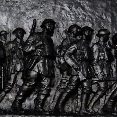 The Robin Hood Rifles or the 'Robin Hoods', as they were popularly known, were a territorial force that recruited almost exclusively from Nottingham. They formed the 7th Battalion of the Sherwood Foresters and as the 1/7th (Robin Hoods) fought on the Western Front from 1915 to 1918, suffering so many casualties the unit was disbanded before the Armistice. Like all members of the Territorial Army, the Robin Hoods were ordered to mobilise immediately after the outbreak of war and within a week crowds gathered from the Market Square to Canning Circus to watch them march to their Brigade Assembly. Most of the men came from the poorer parts of the city, the Broadmarsh and Narrowmarsh, slum areas that have since been pulled down. John Cotterill, who's a founding member of the Guild of Battlefield Guides, says: "Almost to a man they volunteered for overseas service" and in 1915 they were among the first soldiers to endure a liquid flame attack by the Germans. They took heavy casualties at Loos in 1915, Gommecourt on the Somme in 1916 when only 90 returned from a fighting force of 627 and in the Kaiser's Spring Offensive. On 21 March 1918 the 1/7 (Robin Hood) Battalion, explains John Cotterill, had the “sad distinction” of suffering the largest number of dead and wounded than other British battalions, because they kept fighting. The survivors absorbed in to other units until the end of the war. Two more battalions of the Robin Hood Rifles (The 2/7th and 3/7th Battalions of the Sherwood Foresters) were raised during the war. The 2/7th deployed to Dublin in 1916 to fight the Easter Uprising and then fought on the Western Front in 1917, suffering particularly heavy losses at the Battle of Third Ypres (Passchendaele) in September. The 3/7th remained in the UK training reinforcements for the 1/7th and 2/7th. Location: St Mary’s Church, High Pavement, Nottingham NG1 1HR Image: Bronze Relief Monument in St Mary’s Church, Nottingham