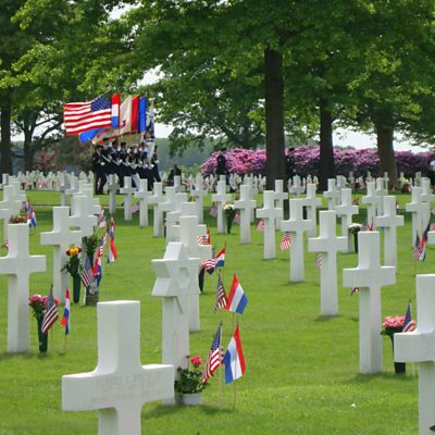 Outside the small Dutch village of Margraten, near the border with Germany, there lies a cemetery. It's the final resting place of more than eight thousand American soldiers, and it’s one of more than a dozen World War II burial grounds for American troops in Europe. But what's different about the Margraten cemetery is that each of the graves there has been adopted by a Dutch citizen who cares for the gravesite. Ton Hermes is the president of the foundation behind this effort. Picture: Dutch and US flags decorate the graves at the American Cemetery and Memorial in Margraten. Courtesy of Ton Hermes