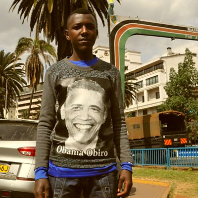 Nathan is an eighteen year old law student who is inspired by Barack Obama. He wants be Kenya's Chief Justice by 2030. He had a t-shirt of Obama made especially for the President's visit. He spoke to Ben James about the visit. (Photo: Eighteen year old Law student Nathan in Nairobi. Credit: Nastaran Tavakoli-Far/BBC)