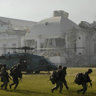 Five and a half years ago Haiti was hit by a massive earthquake, affecting three million people. It was already the poorest country in the Americas, and the disaster prompted an unprecedented response – including the largest-ever humanitarian appeal launched by the UN in the wake of a natural disaster. Haiti is now choosing its new parliament and the Prime Minister has described the elections as a “significant moment” for the country. So is Haiti a “republic of NGOs” or a burgeoning democracy? Is it an example of the success of aid, or the poster child of “disaster capitalism”? Join Owen Bennett Jones and his panel of experts as they discuss how the international community can make sure that its response to natural disasters doesn’t do more harm than good. Photo: A US Navy helicopter by Haiti's presidential palace, shortly after the January 2010 earthquake. Photo credit: AP Photo