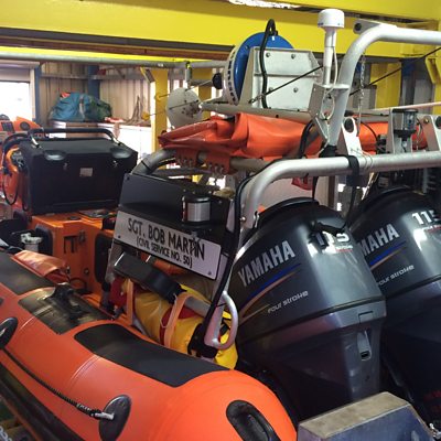 Poole coxswain Jonathan Clarke shows Shelley Jory-Leigh around their lifeboats