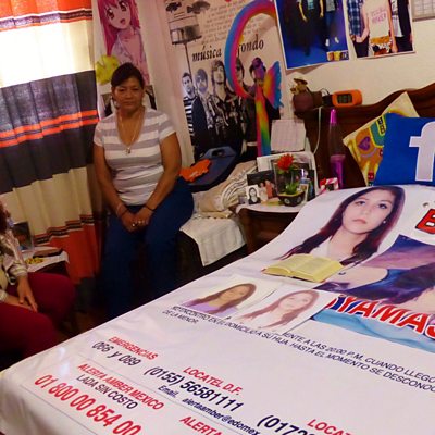 Thousands of women and girls have disappeared over the past decade in the State of Mexico. Many girls are targeted online and go willingly and nobody knows how many of the missing have been found, dead or alive. Some families are left to do the investigating themselves. For Outlook, Nina Lakhani has been to meet two families whose daughters have gone missing. Richard Musinguzi has been nicknamed the 'Walt Disney of Uganda'. The 24 year old is the creator of a cartoon character called Katoto, whose comical adventures have a big following on social media. Two women - one Israeli and one Palestinian - are running a successful business together in the macho world of shipping and logistics. Rola Srouji is based in Ramallah in the occupied West Bank, Anat Shelach is based in Jerusalem - they explain how they get goods across the heavily-policed barrier between Israel and the Palestinian Territories. Alabaster Box is a group from Ghana. They sing a capella, without instruments, and the four of them say they each have an instrument in their belly. They demonstrate their unusual orchestra to Pooneh Ghoddoosi at the Edinburgh Festival. (Picture: The mother and grandmother of missing girl Syama sit in her bedroom. Credit: Nina Lakhani)