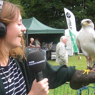 Stand-in clue hunter Hana Lockier had a hawk to hold for a clue at Sheringham Park.