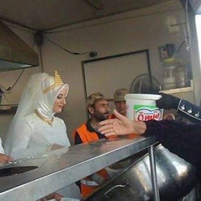 The couple in Turkey who invited four thousand Syrian refugees to their wedding dinner. So how did the bride react when she first found out about the idea? Photo: Fethullah Üzümcüoğlu and Esra Polat dish up Credit: Fethullah Üzümcüoğlu and Esra Polat