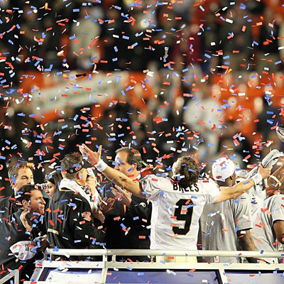 In 2010, the New Orleans Saints swept to victory in the Superbowl - the biggest prize in American sport. The win came just five years after Hurricane Katrina devastated the city and severely damaged the Saints' own stadium, the Superdome. Former Saints player, Jermon Bushrod, recalls how the Superbowl run helped lift the spirits of New Orleans. The programme is a Whistledown Production. (Photo: The New Orleans Saints lift the 2010 Superbowl trophy. Credit: Getty Images)