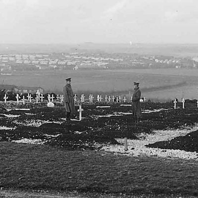 In 1917, the United States entered World War One. American soldiers took over the huge military camp at Morn Hill in Hampshire and suddenly Winchester was full of high-spirited ‘Doughboys’. But the treatment of black soldiers astonished some locals and many Americans died even before they reached the battlefield. Some 740 thousand American soldiers and nurses passed through Morn Hill – a fifth of those who fought in the war. Hundreds succumbed to influenza in camps around Hampshire. Black soldiers were often used for labour, helping to construct camp buildings and a railway, and there are several accounts of fighting in Winchester between white and black soldiers. A history of charitable work in Winchester published soon after the war, records that the civic authorities had promised a memorial to American soldiers. In 2014, the promise was finally honoured. Location: Morn Hill, near Winchester, Hampshire SO21 1HE Image: The American Cemetery at Morn Hill, Winchester. In the distance Winnal Down Camp is visable which was used as a rest camp by American troops on their way to the front. Photograph courtesy of IWM.