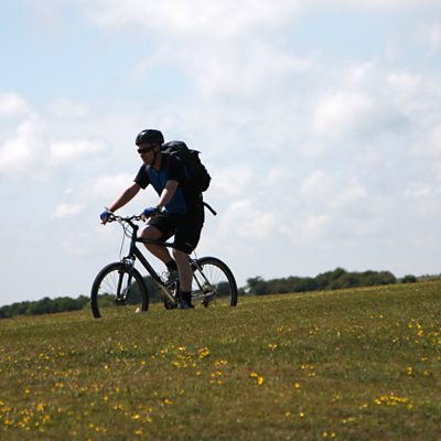 Stefan Sprawling at Richardson's Cycles shows Jill Bennett how to stay safe on the road.
