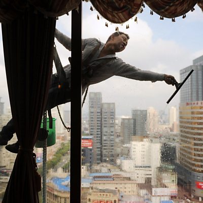 Titanium is the magic metal that made possible the mass production of plastics and paints, as well as buildings that clean both themselves and the air around them. Presenter Laurence Knight heads to the Ineos oil refinery in Grangemouth, Scotland, to see how just a smidge of a titanium-based catalyst transforms a type of natural gas into the stuff of food packaging, bottles and car bumpers. He hears from Prof Andrea Sella why most of us spend our lives surrounded by titanium without even realising it. And, Brian Pickett of pigments manufacturer Cristal explains why his company has been painting various bits of London to further the fight against city smog. (Photo: Window cleaner. Credit: Getty Images)