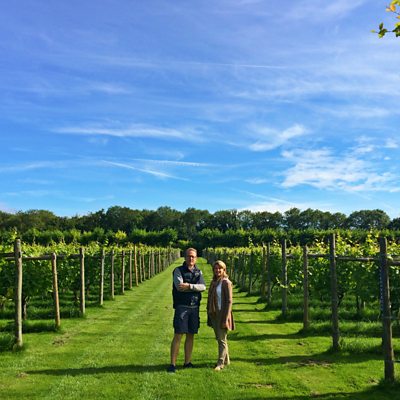 Patrick Westropp & Caroline Stevens introduce Rebecca to a Hampshire vineyard.