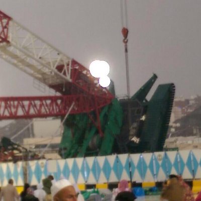 As thousands arrive in Mecca ahead of this year's Hajj a crane smashes through the roof of the grand mosque killing dozens and injuring more than a hundred more. Eyewitnesses say extreme weather may have caused the accident. Sajid from Blackburn was there with his mother. He says the scenes he witnessed were "like a movie" and the storm was the worst he has seen in 15 years of visiting Saudi Arabia. This clip is originally from Adrian Goldberg on Friday 11 September 2015