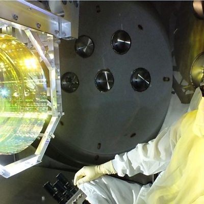 Visions of the universe exert an eerie silence. But as Aleem Maqbool reveals in A New Ear on the Universe all this is set to change. Physicists are racing to develop a cosmic hearing aid which will bring us the Universe’s equivalent of sound - gravitational waves It’s the largest lab on the surface of the planet - located in the Columbia Basin region of southeastern Washington. LIGO, the Laser Interferometer Gravitational-wave Observatory, with its giant laser beam arms totalling 5 miles across the remote Hanford desert, is seeking to detect gravitational waves -- ripples in the fabric of space-time. First predicted by Einstein in his theory of general relativity, gravitational waves are produced by exotic events involving coalescing black holes, neutron stars and objects perhaps not yet discovered and even the remnants of gravitational radiation created by the birth of the universe. The giant lab is atmospherically set adjacent to a former nuclear reactor whose village workers have long disappeared, to be replaced by a new community of scientists. Aleem Maqbool journeys to Hanford home to the remote LIGO observatory as, following a major upgrade, the detector completes the final trial runs as it prepares to go live. He examines the science of gravitational waves, and how it’s both an eye and an ear on the motion of distant objects. He scrutinises its cutting edge technology of almost unimaginable sensitivity to enable detection of some of the universe’s most dramatic events. And he examines the passion and the motivation of individuals who have worked for nearly three decades on a single science experiment, engaging in the stories of those who invented a whole new branch of physics in order to prove the last piece of Einstein's theory of general relativity, and to “hear” the universe in a whole new way. With its laser beam tubes the observatory will be chasing a signal from deep space as small as a thousandth the diameter of a proton What will we expect to hear? The death cries of a supernovae? The mating calls of merging black holes? (Photo credit: Advanced Ligo)