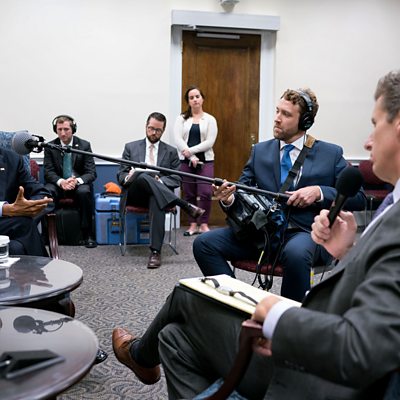 President Obama, speaks to our US partner programme Marketplace, about the efforts to create the world's largest free trade zone agreement. The president insisted that his hand is strong and claimed that if the US does not take the lead in setting the rules of trade in the Pacific, then China will. But is this about his personal legacy? Trickle-down economics is the idea that as people become richer in society, their wealth trickles down through trade to the poorest, creating a stable economy. But should it be the other way round? That is the focus of discussion at the annual meeting of the IMF in Lima, Peru. Their research suggests that countries would be more prosperous if the incomes of the poorest were lifted rather than those of the richest. Michelle Fleury has been to one of Lima's slums to find out how some of the poorest in society are struggling to make a living. We look at the United States' latest attempt to close the salary gap between men and women - the Fair Pay Act - which was signed into law on Tuesday. We hear about the key provisions from California Senator Hannah-Beth Jackson, who proposed the bill and was therefore seeing all her work finally come to fruition. All this and more discussed with our two guests on either side of the Pacific - Paddy Hirsch, senior editor at Marketplace in LA and Jyoti Malhotra, Senior Writer on India Today, in Delhi. (Photo: President Obama is interviewed on Marketplace. Credit: WH photo/Pete Souza)