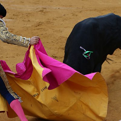 Two sides are sharpening their swords in Spain. Between them, half-tonne bulls. One side wants to kill them in the name of culture, the other to save them in the name of animal rights. It is an age-old contest but the balance of power is changing. Spain’s economic crisis has hit bullfighting hard. And municipal elections in May brought to power a number of left-wing parties bent on stopping funding for bullfights or even banning them altogether. Spain's national bullfighting association has warned that the tradition is in crisis. This programme goes to the rings and ranches where livelihoods are under threat, and asks what the battle for the bull says about contemporary Spain. (Photo: A novillero or junior bullfighter, faces up to a bull at the ring in Cuellar, North of Madrid)