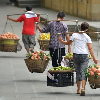 China puts in place drastic new laws to try to stop the rash of food contamination scandals - but do they need something else? We hear from Michael Roberts, a food law expert at UCLA. Indonesia's president tells the BBC's Karishma Vaswani about his efforts to revive his country's economic fortunes. We discuss what Volkswagen's crisis could do to the way we think about cars, with Andrew Simms of the New Economics Foundation in London. Plus, as David Cameron rules out slavery reparations during a visit to Jamaica, we discuss whether paying for a country's historic misdeeds is a viable option. And we hear from Kurt Wagner of tech site Re/code on Twitter's plans to allow posts longer than 140 characters. Roger Hearing is joined by David Moser - acting director of Chinese studies at CET in Beijing, and Diana Furchtgott-Roth of Economics21 in Washington DC. (Picture: Vegetable vendors carrying their produce to sell in China's southwest metropolis of Chongqing. Credit: AFP/Getty Images)