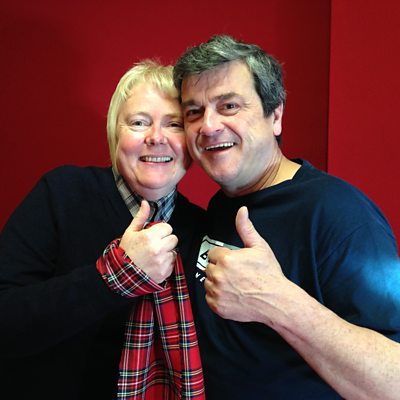 Vic meets Les the morning after the Bay City Rollers performance at the Belgrade Theatre