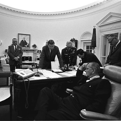 The CIA has just released 2,500 top secret presidential briefings from the 1960s. The President’s Daily Brief – or PDB – is the US intelligence agencies’ best assessment of global threats, delivered directly to the president every morning. The CIA’s director, John Brennan, has described the PDB as “among the most sensitive and classified documents in all of our government”. The decision to release some PDBs, even documents relating to events many decades ago, was not taken lightly. And, the briefings highlight an almost impossible dilemma – one still faced today by every Director of National Intelligence - what should, and should not, be said? The president cannot absorb everything - there has to be a choice. We explore the relationship between the intelligence, the advisers and the president. What does the president need to know? (Photo: President Lyndon B. Johnson (seated, foreground) working with (background L-R): Marvin Watson, J. Edgar Hoover, Sec. Robert McNamara, Gen. Harold Johnson, Joe Califano, Sec. of the Army Stanley Resor. Credit: LBJ Library)