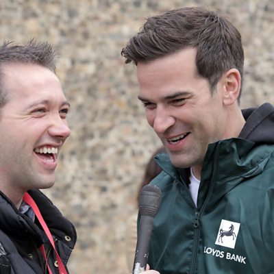 Iwan Griffiths yn sgwrsio gyda'r cyflwynydd Gethin Jones ynglŷn â hanner marathon Caerdydd