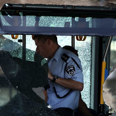 Israel-Palestinian tension turns violent as Jerusalem suffers a series of shooting and knife attacks; MH17 official report confirms missile strike; North Korea's middle class at play. Picture shows Israeli police inspecting the scene following a Palestinian shooting attack on a bus in the Jewish settlement of Armon Hanatsiv in East Jeruslem. (Credit: AFP Photo/Gali Tibbon/Getty Images)