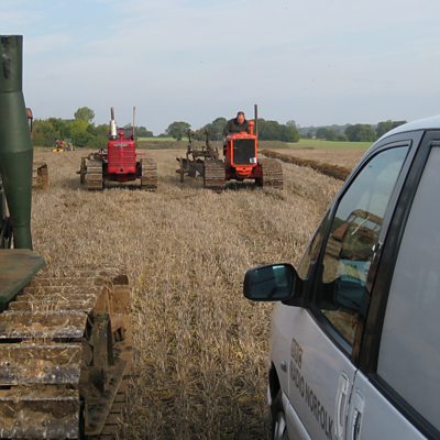 Sophie Little attempts to describe some ploughing equipment at North Elmham.