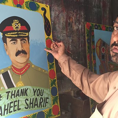 His face is one the back of trucks, he has had a mosque named after him and there are social media campaigns calling for an extension on his term. General Raheel Sharif is the army chief of Pakistan, but his popularity appears to exceed that of political leaders in the country. He's seen by some as a saviour who will eliminate terrorism, corruption and electricity shortages. But there has been a backlash - satirical tweets thanking Raheel Sharif for everything from good weather to a successful flirtation. But with Pakistan's history of a wobbly democracy is this just a spontaneous campaign? Amber Shamsi examines General Raheel Sharif's personality cult. World Leaders in Art Earlier this month President Putin celebrated his 63rd birthday. The date was marked with a special exhibition of portraits of him in various different heroic guises from Putin as Batman to Putin as Gandhi and even Putin as Robin Hood. He is of course not the first world leader to have been set to canvas and immortalised. On the Fifth Floor this week we're looking at the most memorable depictions of world leaders in art and the long lasting effects of those images. We're joined by BBC Russian's Famil Ismailov and Egyptian journalist Dina Demrdash Central Asia's Top Dogs With new research claiming that today's dogs can trace their origins to Central Asia, we hear about the region's most impressive breed - the Alabay sheepdog of Turkmenistan. Famous for being strong enough to fight off wolves, the Alabay is also a trusted member of the family. Mecan Navruzov, a Turkmen working with BBC Monitoring, grew up with them, and tells us why they are a source of national pride. What Xi Should See As Chinese president Xi Jinping ends his 4-day visit to Britain, we go round the Fifth Floor for an alternative tour. No Buckingham Palace or trade exhibitions. Instead, he's recommended to dance the tango at a famous London meat market, or try his luck at the dog races. An insight into what Fifth Floorers have discovered and enjoyed since moving to the UK. Mexico's Disappeared Women Lourdes Heredia is a Mexican journalist. She left her home country 20 years ago to follow her dream of becoming a journalist. On a recent visit back, she met an old friend, an investigative reporter who has been covering the story of Mexico's disappeared women. A story that is well documented internationally but very seldom reported inside the country. What Lourdes heard, changed the way she thought about her country, and about ever returning home. In Praise of Urdu Poetry So which poet would you choose to represent your nation? This week Aliya Nazki challenges two colleagues from the Urdu service to a poetry duel. Their task is to decide which poet will best represent the Urdu language. For a region that is passionate about its poetry this is not an easy business. Aliya chose Mirza Asadullah Khan Ghalib, her colleagues Hussain Askari and Qandeel Shaam respectively chose Jon Elia and Faiz Ahmed Faiz. And Fifi Haroon shares her favourite stories from the world wide web this week Picture: A Pakistani artist paints a poster thanking Raheel Sharif