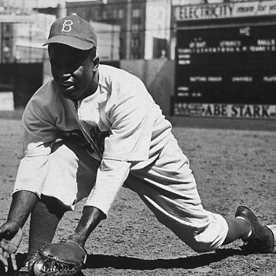 Jackie Robinson was a legendary figure in American baseball - the first black player in the professional game and the man who led the Brooklyn Dodgers to their only World Series triumph in 1955. Tim Mansel talks to Robinson's son, David, and to veteran US sports writer, Roger Kahn. The programme was first broadcast in 2011. (Photo: Jackie Robinson in the 1950s. Credit: Hulton Archive/Getty Images).