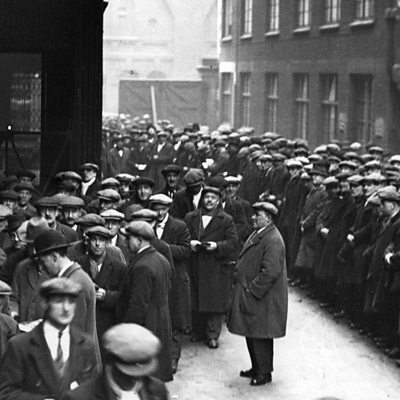 In October 1929, Wall Street crashed and the greatest depression the world had ever seen began. Harry Leslie Smith tells Witness his story of growing up in extreme poverty in the north of England, and how his sister died of TB in a workhouse infirmary, too poor for proper medical care. Photo: unemployed men queue for work at a dockyard during the Great Depression (Credit:Fox Photos/Getty Images)