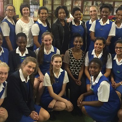 To celebrate the programme's first birthday, Kim Chakanetsa is at Parktown High School for Girls in Johannesburg, bringing 22 students who are in their final year and about to set out into the world, together with two dynamic southern African women who share a passion for connecting people through technology. Khosi Zwane-Siguqa is Head of Content for the communications app WeChat Africa. She dropped out of a law degree to become a community journalist, a move her father was not happy about - but she says she has made him proud by going on to have a stellar career, becoming the youngest ever editor of South Africa's iconic Drum magazine. Her move into tech came recently, and she is now using her story-telling skills to create engaging and relevant content for one of Africa's newest digital platforms. She says her approach to content is all about community, and she is passionate about finding African solutions to African problems through technology. Emma Kaye is founder and CEO of Bozza, an online platform that links local artists and musicians with a global audience, and enables communities to tell their stories from the inside out. A serial entrepreneur, Emma says she and risk have always been good friends - she jumps in, and only does the things she loves. After trail-blazing in South African films and animation, she realised that the next big screen in Africa was going to be the mobile phone, so went into developing apps and content. Frustrated by how few story-tellers were getting exposure, she did something about it, and her platform is now helping 10,000 artists across Africa to be their own boss. The girls about to finish high school share their hopes and ideas for their futures, ask searching questions and seek advice from Khosi and Emma, on how to grow their confidence and achieve their dreams. Picture: Kim Chakanetsa with Emma Kaye, Khosi Zwane-Siguqa and pupils at Parktown High School for Girls, Johannesburg, South Africa