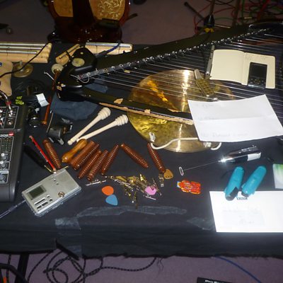 Cân o Sesiwn Unnos Ynyr Brigyn, y bardd Mei Mac a'r telynor Rhodri Davies.