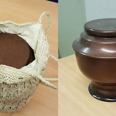 The ashes of Gwendoline Harding were found in a skip in North Norfolk last week. She died in 1996 aged 84, and was cremated in Watford - but the urn was found at Little Snoring, near Fakenham. Today, the ashes were handed back to her family, after they heard our report last night. Our reporter Jill Bennett was there.