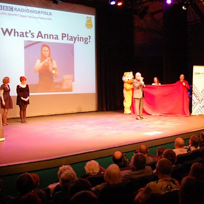 Treasure Quest phone answerer Anna Perrott put her woodwind talents to good use at our annual Children in Need charity stage show, using her trumpet mouthpiece on some unexpected items, with other members of the team having to guess what she was playing!