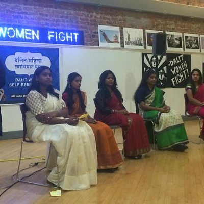 Dalits were once called Untouchables and occupy the lowest rung on the traditional caste system; discrimination against the group remains deep-rooted in India. But the topic remains a difficult one for Dalits to bring up, let alone change. A new campaign is taking on caste violence, though, and they’ve been reaching out to activist movements like Black Lives Matter in the US. Image: Members of the All India Dalit Women’s Rights Forum speak at the Women's Building in San Francisco. Credit: Sonia Paul
