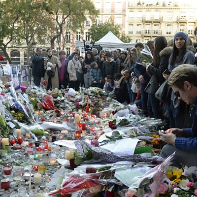 Thomas Tran Dinh was in the Bataclan theatre when gunmen opened fire on concert-goers, killing nearly 90 people. Photo: people mourn as they gather at a makeshift memorial near the Bataclan concert hall in Paris. Credits: Miguel Medina/AFP/Getty Images.